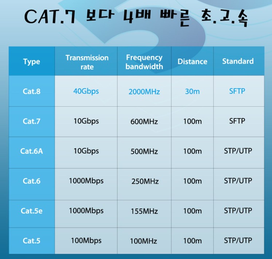 가장 중요한것 기존의 케이블(cat)선을 cat8 변경할것