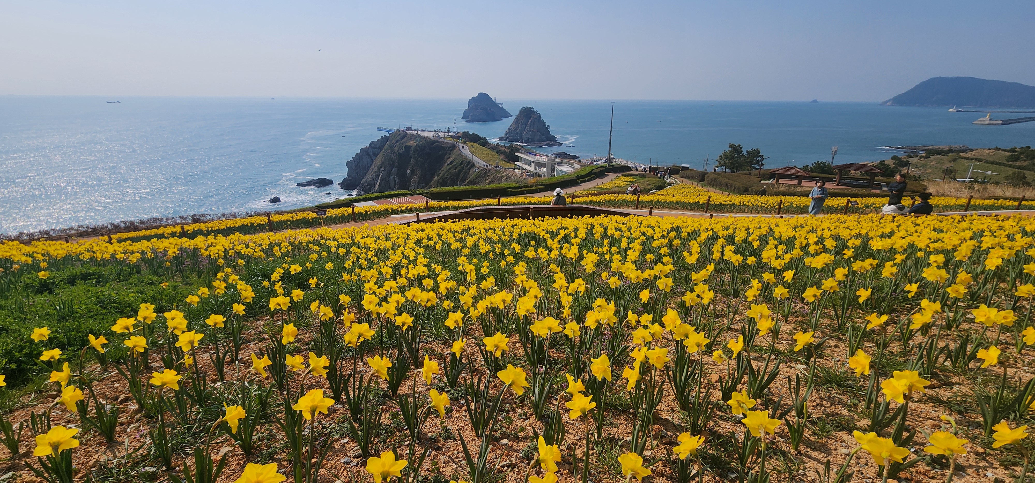 수선화의 그 황금빛이 푸른 바다와 어우러진 장면은 정말 상상만으로도 마음을 편안하게 해주는 것 같아요.