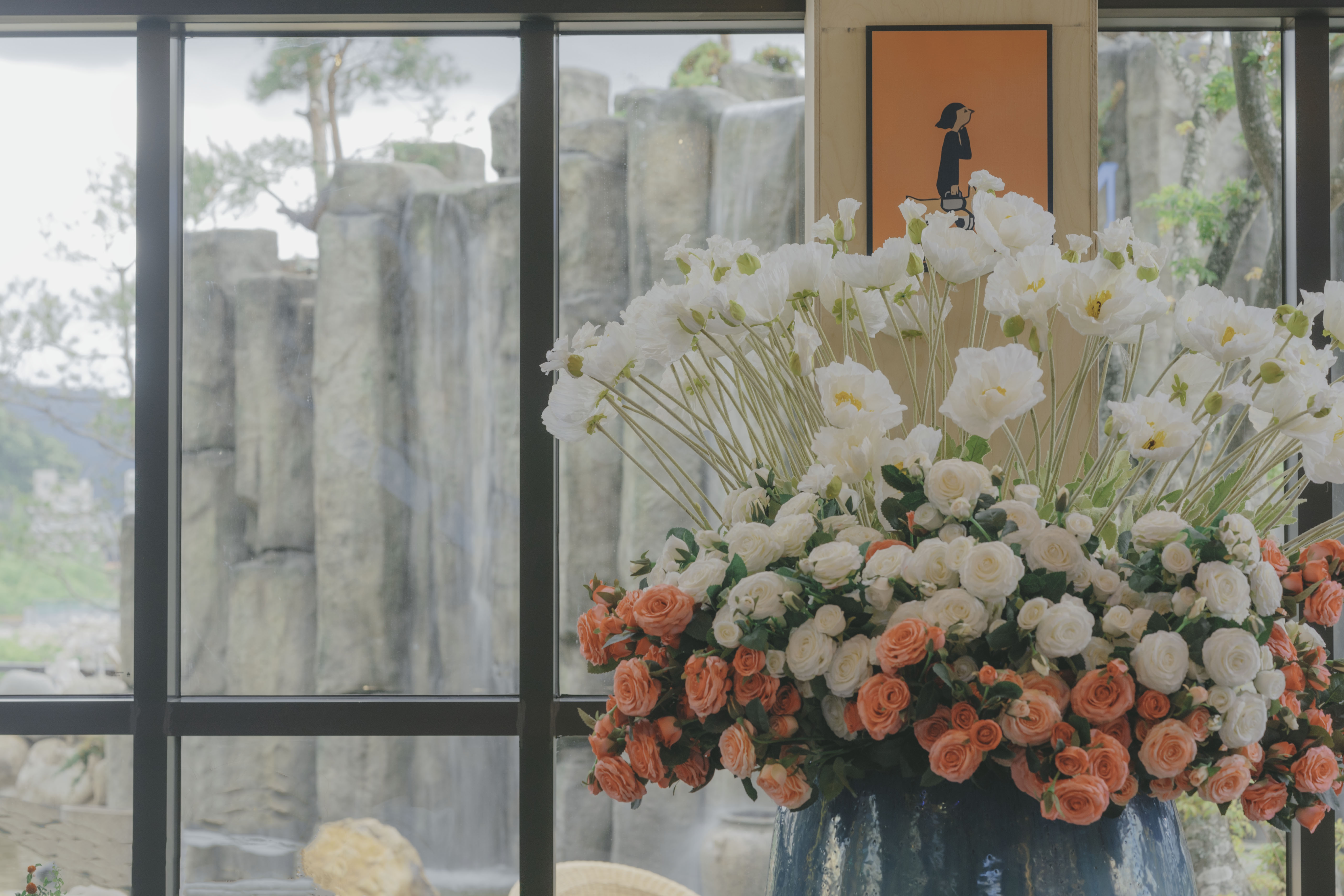 야외에는 라탄 의자에 앉아 인공 폭포를 바라보다 보면 고개 너머로 기차가 지나는 풍경까지 더해져 이국적인 감성