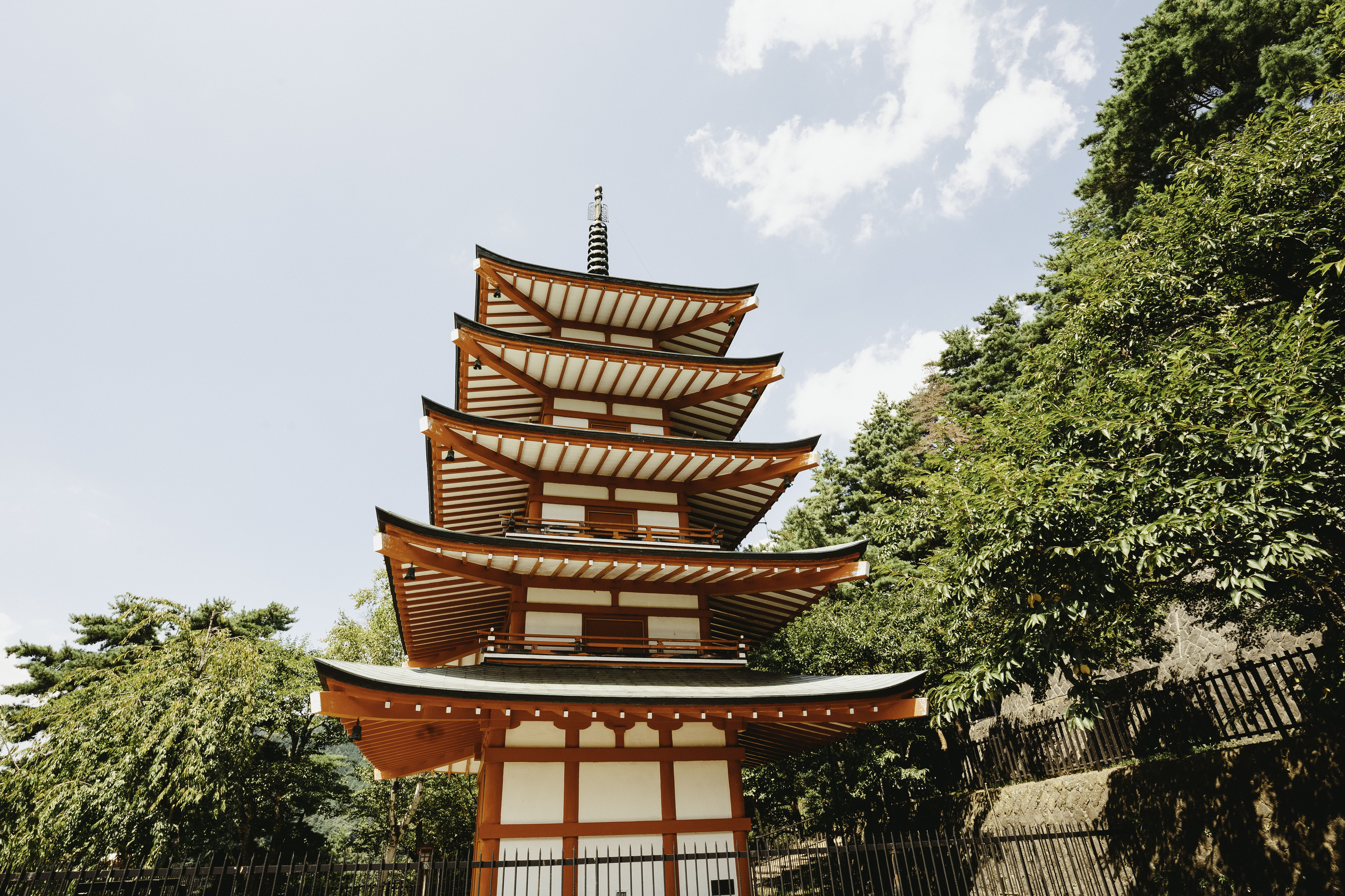 - 아라쿠라야마 센겐: 파고다와 산이 어우러진 풍경” 사진을 찍기 좋은 위치를 찾으려 조금 등산을 했음