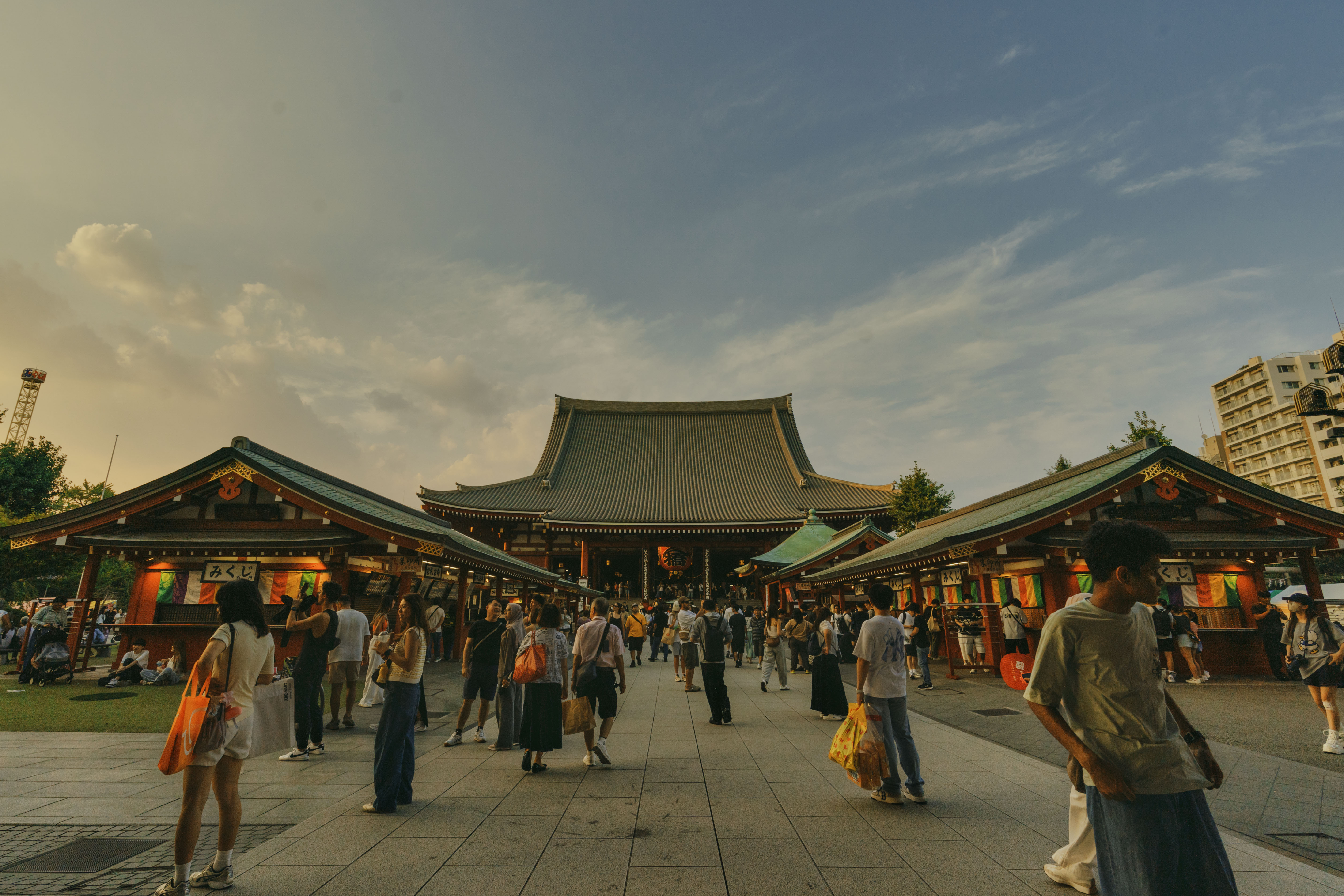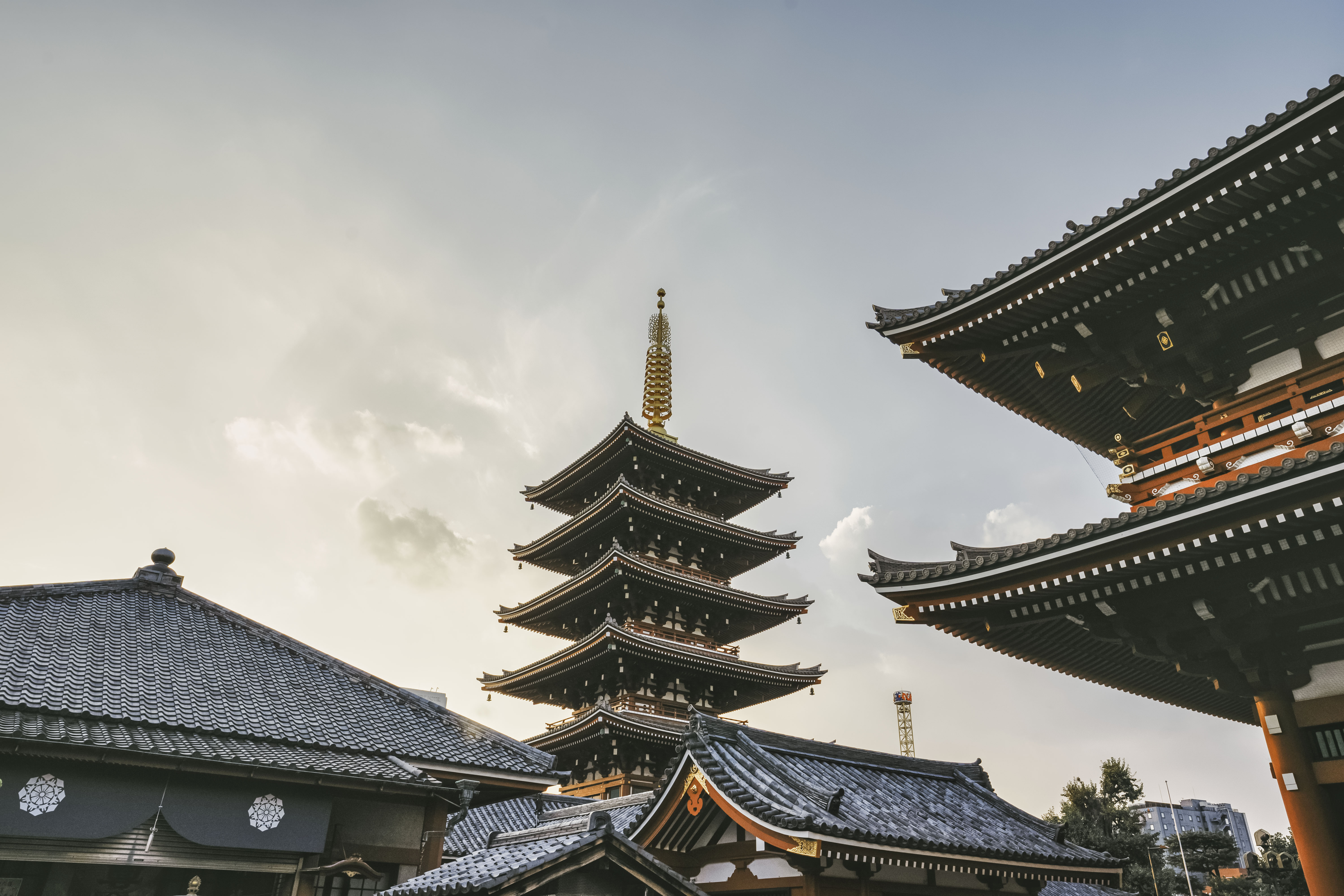 - 노을에 물든 센소지와 스카이트리, 저녁의 일본 풍경”