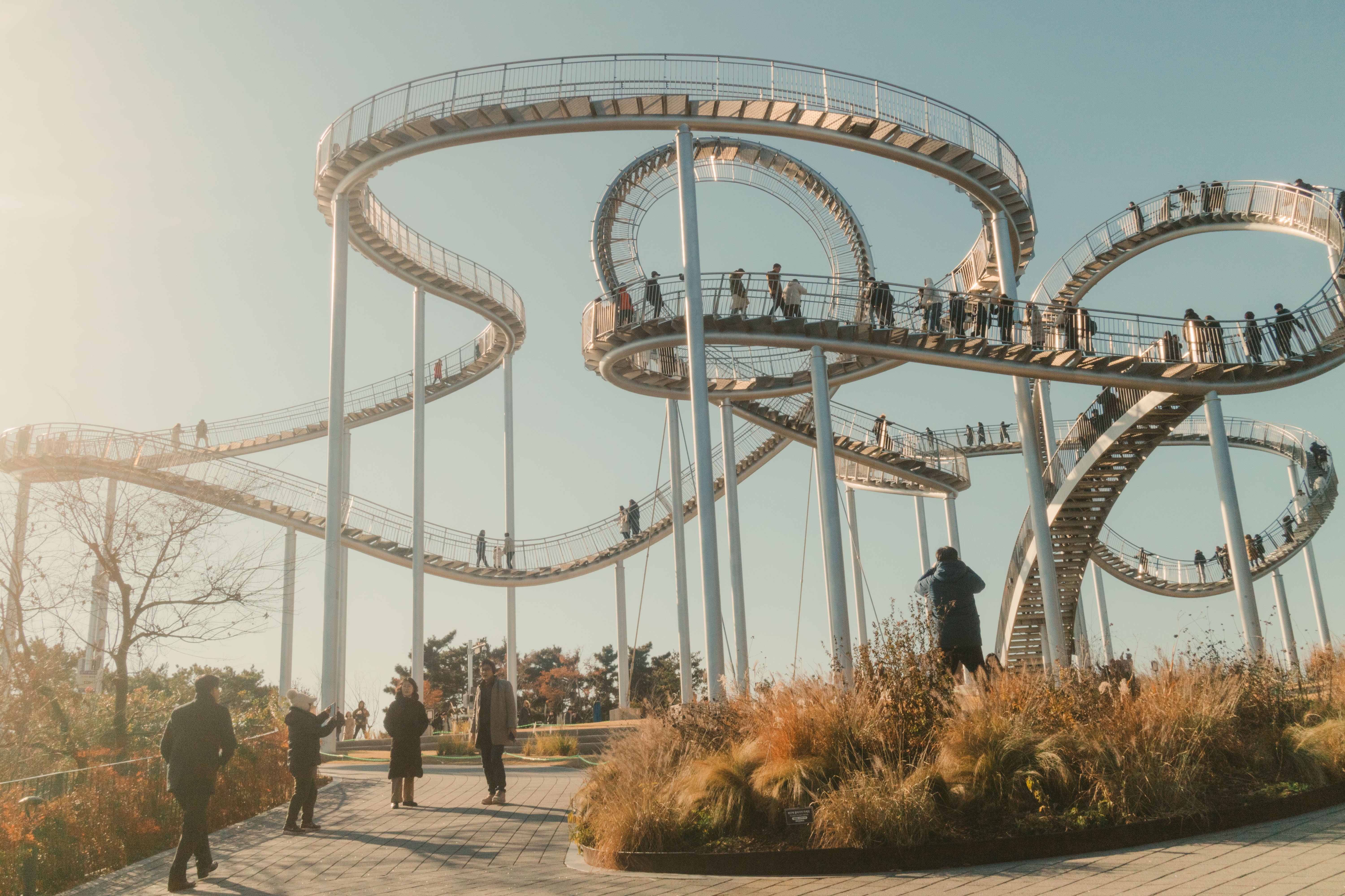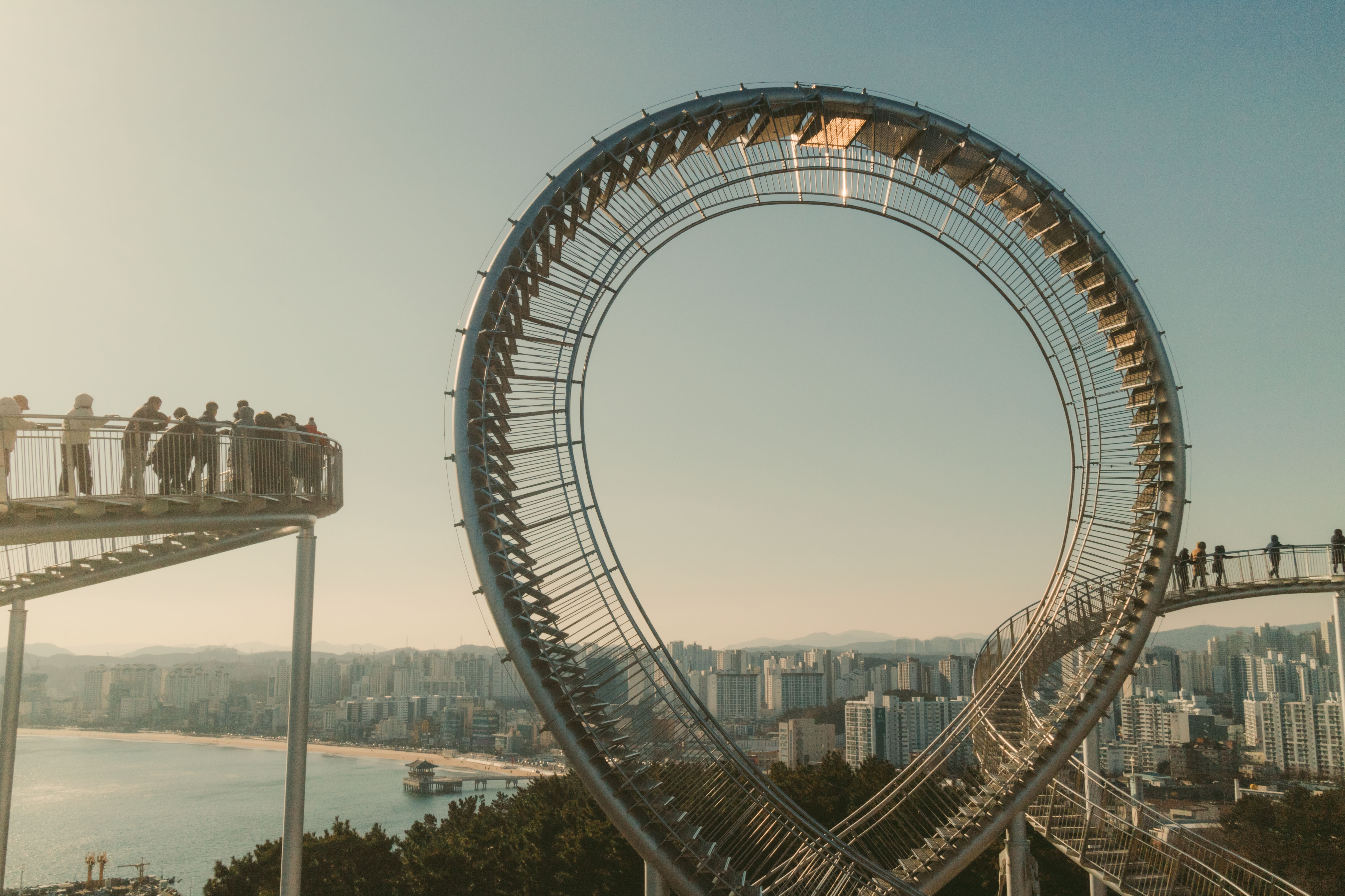 죽도시장 근처에 있는 이 독특한 산책로는 트렌디한 명소로 자리 잡고 있네요. 곡선형 길을 따라 걷다 보면 색다른 경험과 신선한 기분을 느낄 수 있을 것 같아요.